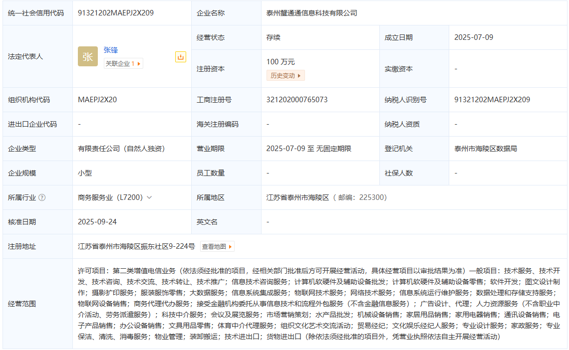 泰州蟹通通信息科技有限公司